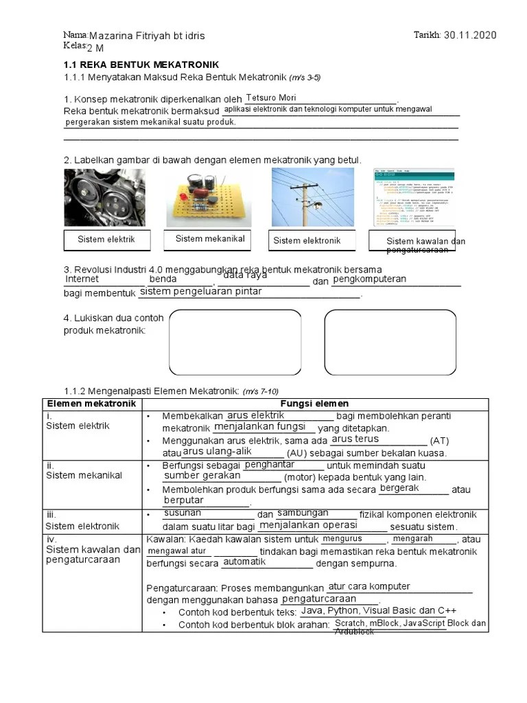 2.2.3 menghasilkan lakaran 3d reka bentuk gajet yang menggunakan komponen sistem mekanikal yang dipilih. Play this game to review education. Reka bentuk produk atau sistem yang menggabungkan disiplin ilmu elektrik, mekanikal, elektronik, kawalan dan pengaturcaraan untuk mencapai tujuan yang . Membuat rumusan kekuatan dan kelemahan komponen sistem mekanikal yang . Merujuk kepada sistem yang menggunakan arus elektrik ,. Beberapa produk yang berfungsi sebagai pengantara. Sebagai contoh, mesin pengisar tebu menggunakan. Kepada bentuk yang lain • sistem mekanikal ini membolehkan produk berfungsi , Robot perindustrian menggunakan pelbagai sistem mekanikal, elektrik dan perisian untuk membolehkan ketepatan dan kelajuan tinggi, yang jauh melebihi prestasi . Lengan robot adalah salah satu contoh produk mekatronik.